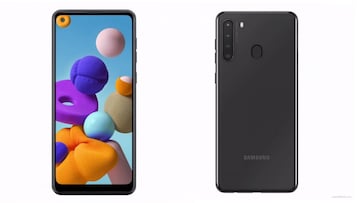 - Galaxy A21 has the selfie camera cut out on the top left of the screen